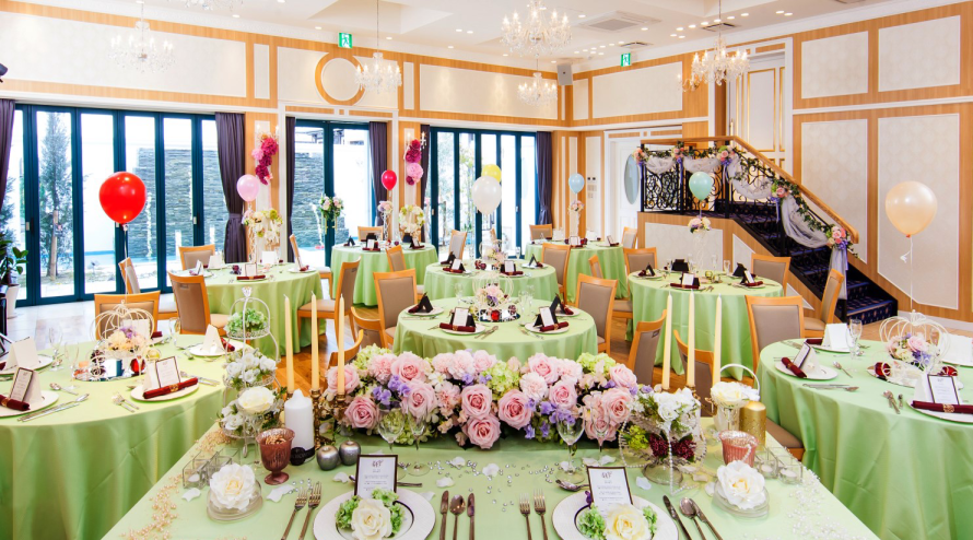 ガーデンと併設された自然光溢れるバンケット