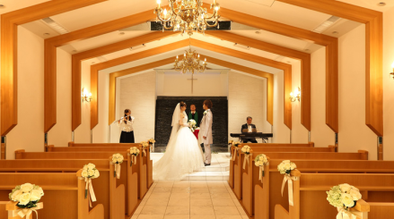 木のぬくもりあるチャペルはゲストとの一体感をさそう